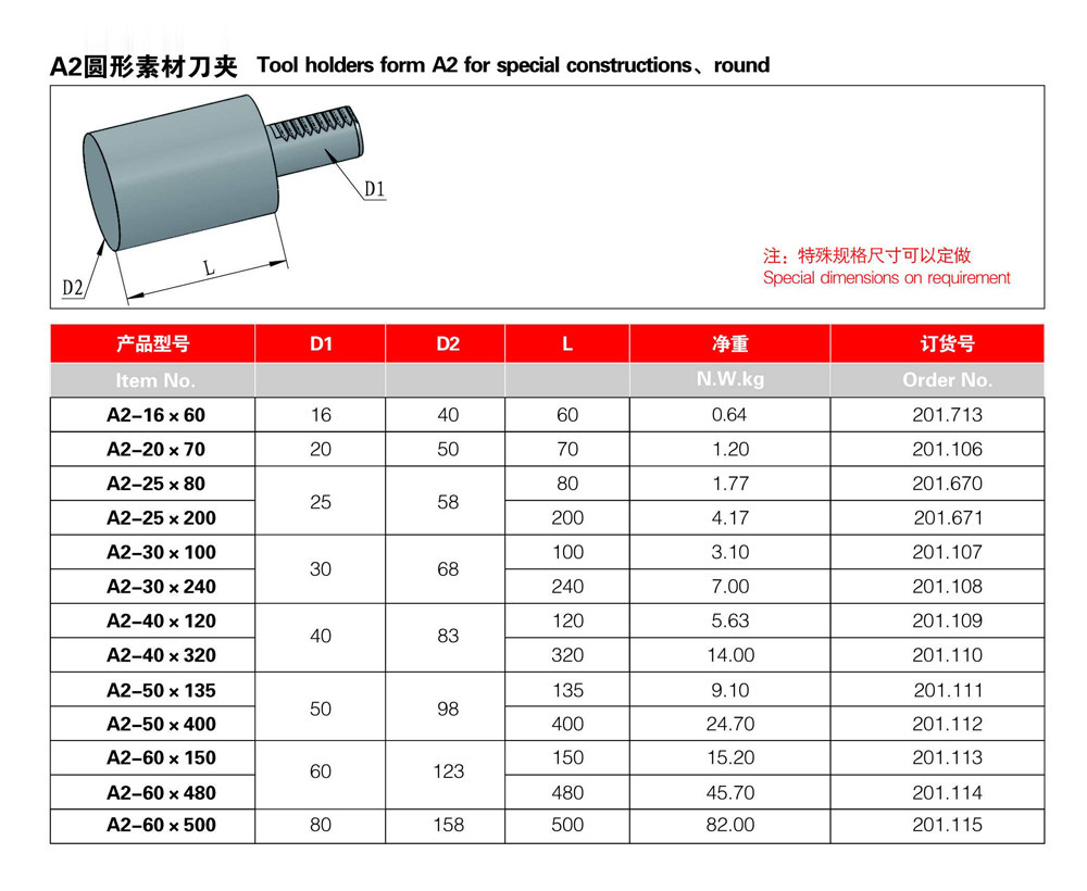 刀柄毛坯 A2 型,用于特殊結(jié)構(gòu)、圓形